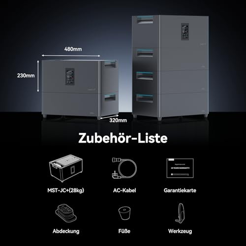 MARSTEK JUPITER C Plus, 2.56kWh Balkonkraftwerk mit Speicher, 4 MPPT 2400W Solareingang, All-in-One Stromspeicher mit Mikroinverter, 10.24kWh Kapazität, 6000 Ladezyklen