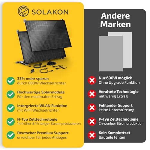Solakon® 880W Balkonkraftwerk 800W / 600W komplett Steckdose – Upgradebarer Wechselrichter – 440W Bifaziale Solarmodule & 600W/800W Wechselrichter & Zubehör